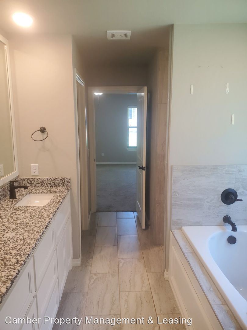 Very Nice 4 bedroom 2 bath home in Edmond Schools - *** 3D Virtual Tour *** https://www.insidemaps.com/app/walkthrough-v2/?projectId=SFN99DnrRm&env=production WELL MAINTAINED home in the coveted Woodland Park community with 4 bedrooms + 2 baths + 3 car garage with storm shelter. Modern finishes, split floor-plan, & flowing with natural light throughout! Living room has gas fireplace with stone surround, barn door, & timeless wood look tile. Kitchen features stainless appliances, built-in gas range & oven, stunning quartz counters, spacious dining area, walk-in pantry, & extra large island for entertaining. Master suite with tray ceiling, large granite vanity with 2 sinks, Whirlpool tub, floating shelves, beautiful shower & Australian style walk-in closet connecting to laundry room - the perfect floor-plan! Don't miss the sprinkler system, Smart Home Technology, whole home air filtration system, tankless water heater, & ideal sized backyard! Neighborhood pool & clubhouse, walking trails, stocked ponds, & super friendly/active community in gorgeous East Edmond & award winning Edmond schools. Lawn care included! Pets Case by case Refrigerator* (as is), range, microwave and dishwasher included Tenant responsible for washer and dryer